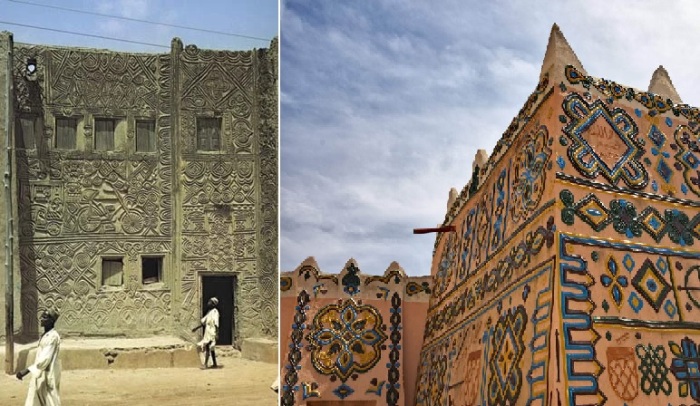 Представители крупнейшей этнической группы, проживающая в южных районах Нигера и северных районах Нигерии, попавшие под значительное исламское влияние, выработали собственную систему передачи информации посредством орнаментов и узоров. Их архитектура берет начало из традиционного глинобитного строительства, а оформление экстерьера является холстом, отображающим удивительные аспекты культуры хауса, выраженных в оригинальном использовании цветовой гаммы, позволяющей создавать яркие и замысловатые расписные здания. При этом расписывались не только жилища, общественные здания, мечети и дворцы также могут похвастаться обилием красочных мотивов и резных деталей, в которых отражены религиозные и бытовые традиции, история и культурное наследие.