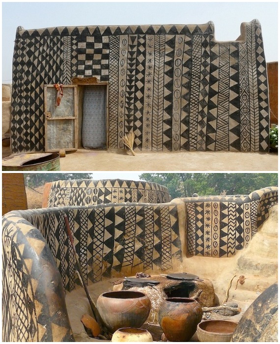 Стоит отметить, в технике росписи стен народов хауса также преуспели женщины, которые с особой тщательностью с помощью линий и красок рассказывают об истории своего рода и статусе семейства. Местные знают, чем сложнее отделка фасада и замысловатей мотивы, тем богаче владелец и выше его социальное положение.