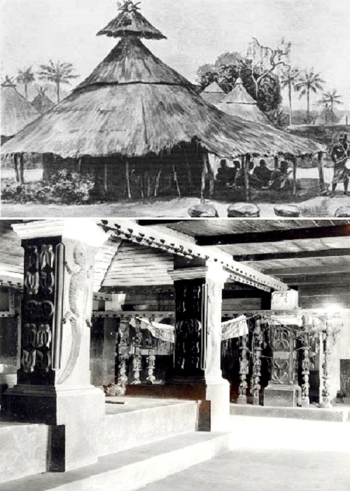 Исторически так сложилось, что на этих землях были образованы довольно процветающие королевства, центром правления которых являлся дворец вождя. При этом главным элементом комплекса становились передние дворы, которые выступали и в роли религиозного объекта, где проводилась все ритуалы, и местом собраний для управления государством, включая судебные и карательные функции.