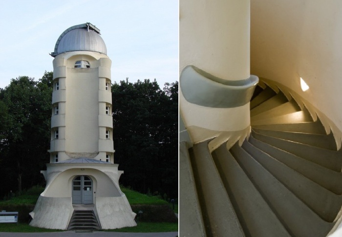 Башня Эйнштейна — еще один яркий пример архитектуры экспрессионистского стиля. Обсерватория, построенная немецким архитектором Эрихом Мендельсоном в 1919 – 1921 гг., предназначалась для размещения экспериментального солнечного телескопа. Для такого сооружения экспрессионист в качестве разработчика проекта подходил лучше всего. Мало того, что он приятельствовал с самим Эйнштейном, так ему удалось просто фантастическим образом отразить радикальные теории, высказанные эксцентричным физиком-теоретиком и философом науки (в частности, удалось стилизовать его теорию движения).