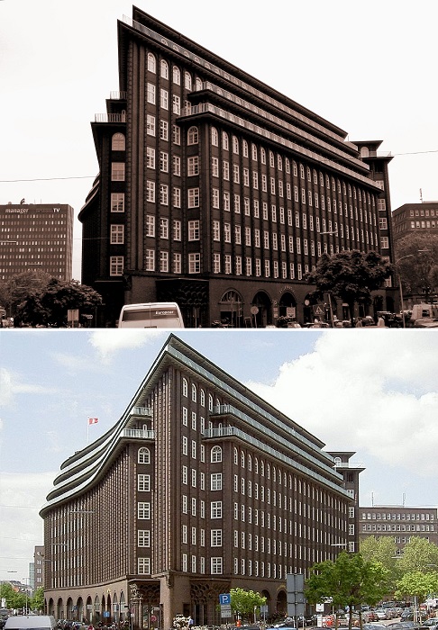 Здание , построенное в 1922 - 1924 гг. по проекту немецкого архитектора Фрица Хёгера, является одним из значительных памятников экспрессионизма в мировой архитектуре («Чилехаус» или «Нос корабля»).