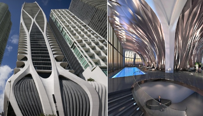 One Thousand Museum – 62-этажный, ультрароскошный комплекс, расположенный в самом центре Маями, стал ярким примером жилой архитектуры в стиле экспрессионизм (проект Захи Хадид, Флорида).