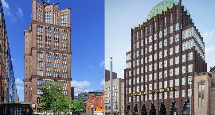 Культовые сооружения в стиле кирпичного экспрессионизма (башня Borsigturm и задние Anzeiger-Hochhaus в Германии).