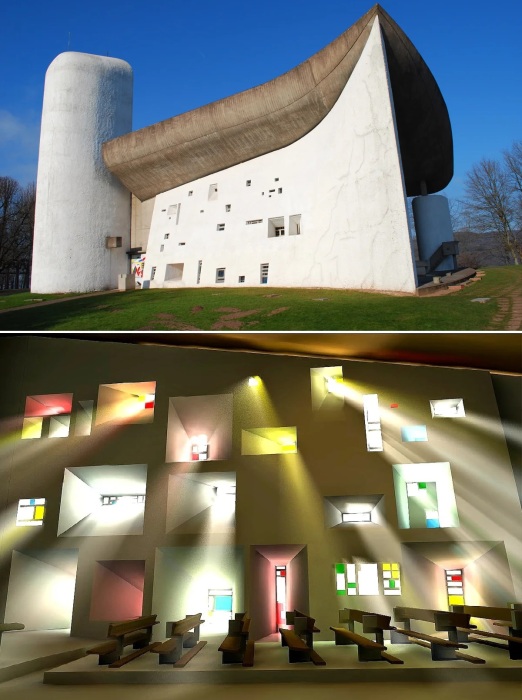 Часовня в Роншаме – пример синтеза сразу нескольких направлений от мастера света, культового архитектора Ле Корбюзье (Нотр-Дам де Септембр).