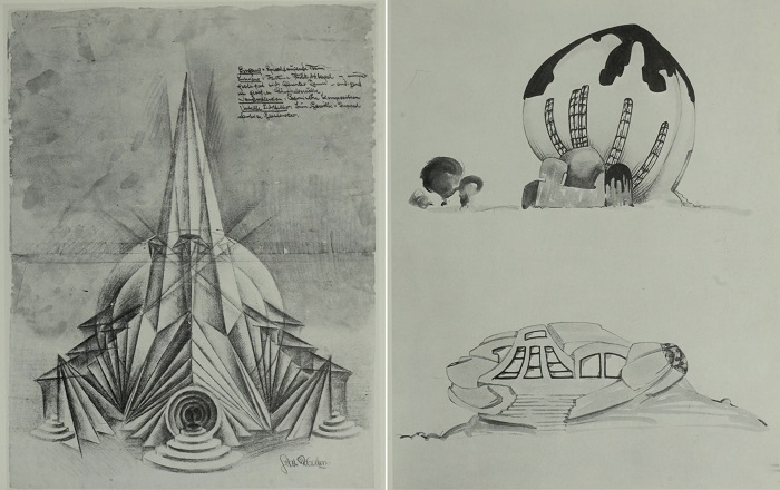 Эскизы архитекторов-экспрессионистов отражают их видение мира и фантастические идеалы.