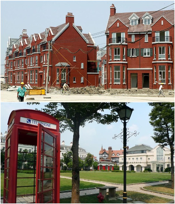 Для строительства района-двойника британских городов приглашались строители из Великобритании (Thames Town, Китай).