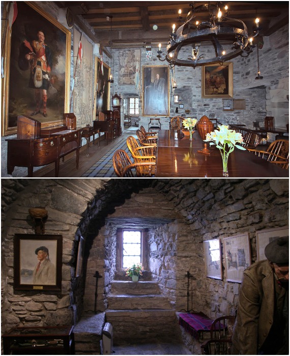 Один из потомков Клана Макрея, восстановивший замок, украсил стены замка картинами, изображающими его владельцев и почетных гостей, включая монарших особ и представителей своего рода (Eilean Donnain, Шотландия).