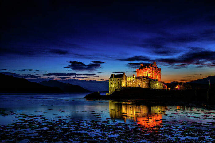 В темное время суток Замок приобретает особо эклектичный вид (Eilean Donnain, Шотландия). | Фото: br.thptnvk.edu.vn.