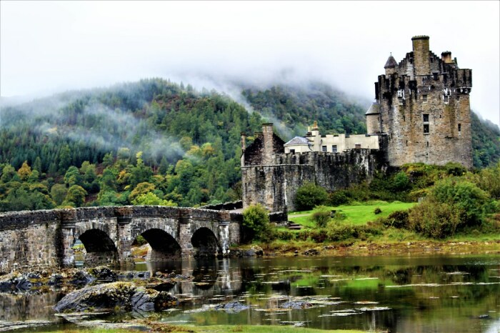 Сейчас все желающие могут отправиться на экскурсию в средневековый замок, к которому проложили основательный каменный мост (Eilean Donnain, Шотландия).