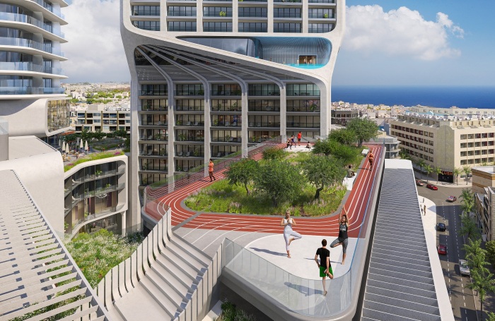 Разработчики задействовали все свободные поверхности, включая переходы, подиумы, террасы и крыши (Mercury Towers, Мальта). | Фото: perry.com.mt.