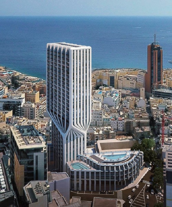 Главной архитектурной жемчужиной преобразованного квартала является 122-метровая башня с драматическим изгибом (Mercury Towers, Мальта). | Фото: homesofquality.com.mt.