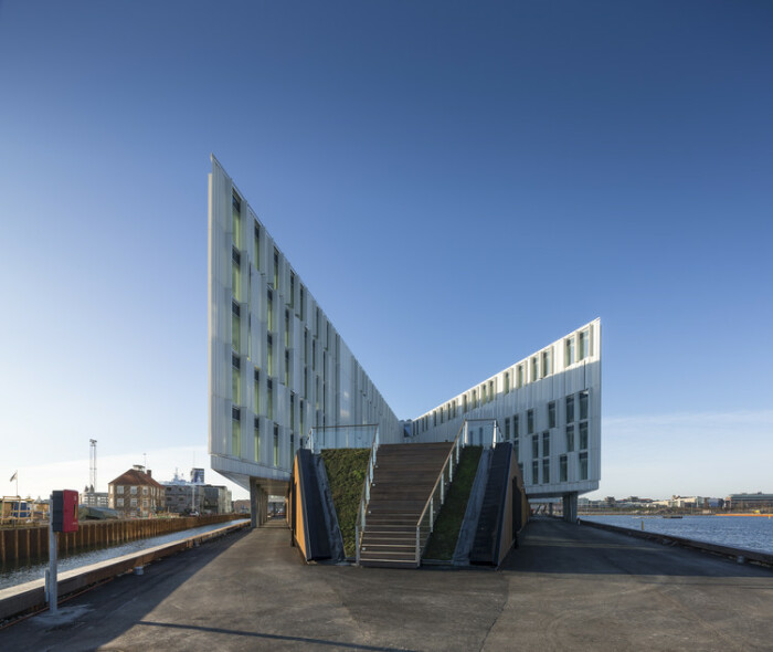Главный офисный корпус «Города ООН» стал украшением старой пристани, которую активно реконструируют (Копенгаген, Дания).