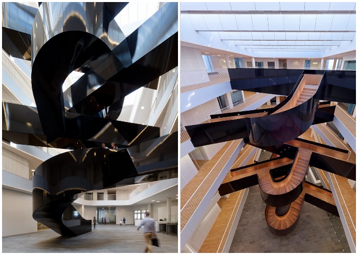 Дизайн лестницы отражает главные идеи ООН и способствует взаимодействию сотрудников (UN City, Копенгаген). | Фото: archdaily.com.