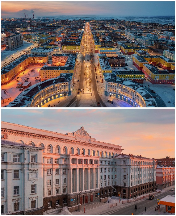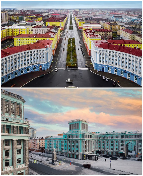 На фоне суровых арктических условий сталинский ампир еще больше впечатляет (Норильск, Красноярский край).