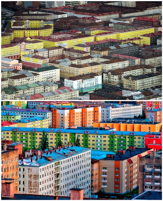 Дома в Норильске окрашивают в яркие краски не столько для того, чтобы поднять жителям сурового края настроение.