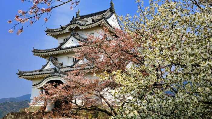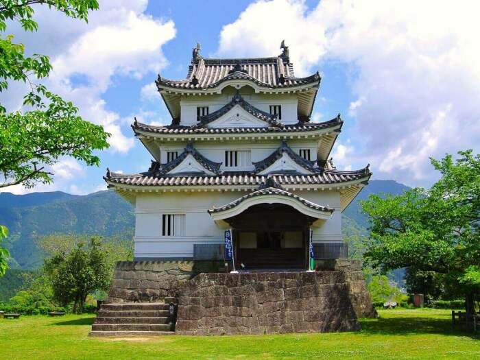 В префектуре Эхимэ имеется свой оригинальный замок, только он отходит от привычных стандартов и традиций. Здесь не увидите мощной неприступной опорной стены, выступающей высоким фундаментом, ни огромной территории и привычного величия. Тем не менее Замок Увадзима не лишен милого очарования, особенно если воспринимать его как часть природной композиции, в которую входит береговая линия, живописные горы и невероятные звуки чириканья, щебетания и пронизывающие крики хищных птиц. Главной архитектурной изюминкой этого древнего замка стала его форма. Несмотря на то, что прохожим он кажется квадратным, но это пятиугольник с секретной стороной, предназначенной для скрытого побега, которая стала ярким примером изворотливости уловок зодчих, спроектировавших замок.