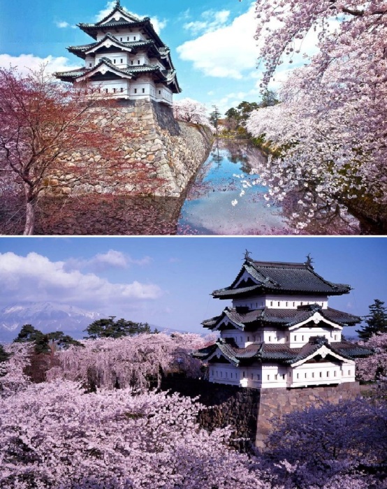 Замок Хиросаки – место, где ежегодно проходит захватывающий дух фестиваль цветения сакуры (Япония).
