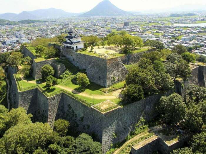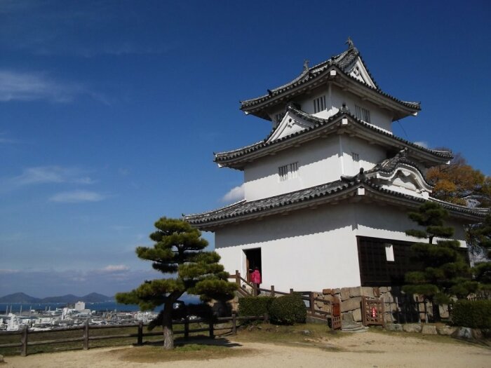 Замок Маругаме, расположенный к западу от Такамацу в префектуре Кагава на севере острова Сикоку, был построен в 1597 году, что делает его одним из старейших оригинальных замков Японии, сохранившихся до наших дней. Возведенный на холме к югу от города Маругаме, он отличается могучими стенами, высота которых достигает 60 метров, что является рекордом для Страны восходящего солнца. Наиболее впечатляющим объектом древней крепости для современных туристов стала центральная башня, украшенная коллекцией самурайских шлемов, мечей, воинских доспехов, а также фотографиями других крепостей Японии. Не стоит сбрасывать со счетов и то, какая красота открывается с высоты замковой территории (начиная с живописной местности и заканчивая голубыми водами Внутреннего моря).