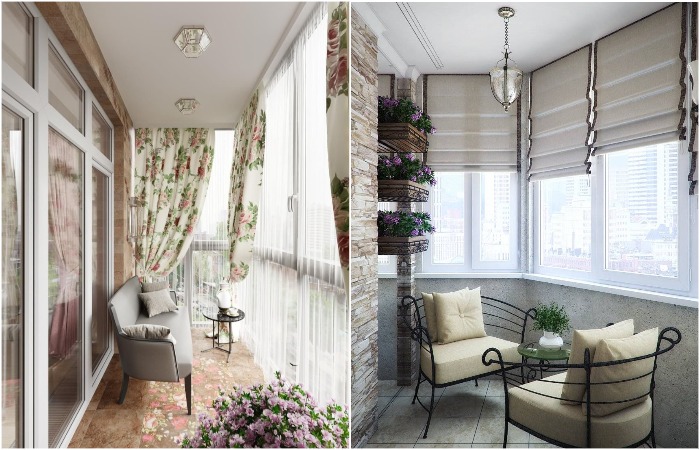 Если из окна открывается прекрасный вид на город или близлежащий парк, нет смысла закрывать его шторами – они пригодятся лишь в том случае, когда балкон находится с южной стороны, и солнце мешает вашему комфортному пребыванию здесь. Но если вам «повезло» оказаться в тесном кругу с другими многоэтажками, где все балконы отлично просматриваются, именно шторы помогут создать уединенное пространство. Можно выбрать классические занавески, полупрозрачный тюль, римские шторы или стильные жалюзи, подходящие по цвету, – все зависит от ваших личных предпочтений. Следуйте лишь одному совету – пусть текстиль перекликается по оттенку с мебелью или отделкой: так обстановка получится более целостной и гармоничной.