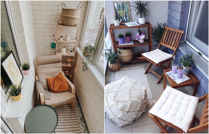 Конечно, можно пойти на поводу у Pinterest: расставить много комнатных растений, увеличить количество мебели и декора, чтобы интерьер смотрелся, как на картинке, но тогда вы лишите себя места для маневров. Вам будет просто тесно и неудобно в этой комнате, а ведь она предназначена, в первую очередь, для отдыха и релакса. Поэтому сразу распланируйте балкон, решите, что где будет стоять, сделайте необходимые замеры и только после этого отправляйтесь в магазин за покупками. Поверьте, лучше не загромождать и без того маленькое пространство, чтобы потом не чувствовать себя здесь, как в тесном чулане.