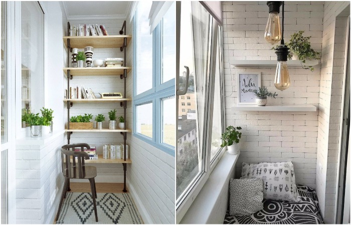 Чтобы грамотно задействовать каждый метр свободного пространства на балконе, позаботьтесь о наличии систем хранения. Даже если вы не планируете превращать помещение в гардеробную или хранить здесь, например, сезонные вещи, полки или открытый стеллаж придутся как нельзя кстати. На них можно разместить красивые коробки или плетеные корзины, также прекрасно будут смотреться комнатные растения, сезонные постеры, свечи, статуэтки и прочий декор, который легко менять в зависимости от времени года. В результате вы получите не только уютное, но и функциональное пространство. На заметку: Особенно актуальной идея будет в случае, если вы живете в однушке, студии или хрущевке, где вечно не хватает места для хранения. В этом случае даже небольшой стеллаж на балконе станет настоящим спасением, так как сможет «разгрузить» другие комнаты.