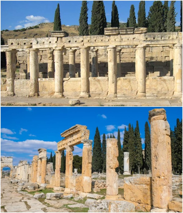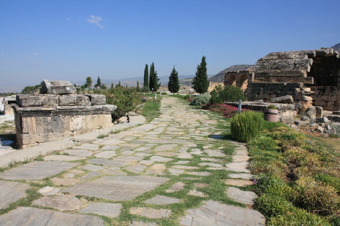 Стоит отметить, что современники могут хоть и не в полном объеме, но все же ощутить изысканную красоту древнего курорта, которая начинается с обустройства дороги, ведущей к источникам. Она брала свое начало от ворот Домициана и была главной улицей Иераполиса, которая когда-то являлась центром коммерческой, религиозной и общественной жизни античного города (ее протяженность более 1,2 километра). Прогуливаясь по старинной дороге, можно изучать историю города и его культуру, точнее сказать, воочию убедиться, как на протяжении истории переплетались судьбы, стили и культура разных народов и верований.