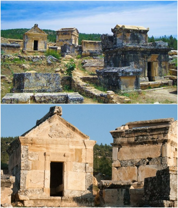 Гробницы богатых горожан и гостей, так и не дождавшихся исцеления, выделяются размерами и изысканным оформлением (Иераполис, Турция).