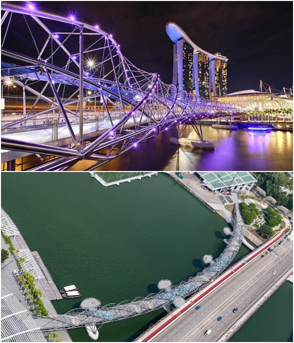 Спиральный мост в сингапурском заливе Марина Бей был вдохновлен замысловатой структурой ДНК (Helix Bridge, Сингапур). | Фото: most-helix-singapur.