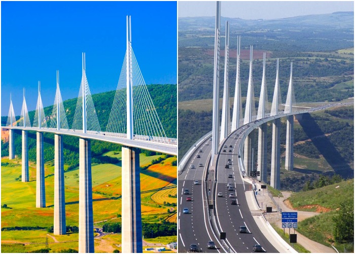Вантовый мост длиной 2 460 метров, переброшенный через реку Тарн и проходящий через ее обширную долину, считается одним из самых совершенных мостов мира. Дизайн такого великолепного сооружения, с точки зрения эстетики и технических аспектов, потребовал от Нормана Фостера, Мишеля Вирложе, других инженеров и мостостроителей немалых усилий как во время проектирования, так и в период строительства. Непревзойденная координация, инновации и высокие технологии позволили реализовать проект, использовав облегченный материал, что поспособствовало его устойчивости ураганным ветрам и к сейсмическим колебаниям. Инновационные внедрения делают Viaduc de Millau (виадук Мийо) одним из самых безопасных мостов в мире, не лишенным особой элегантности и эстетической привлекательности.