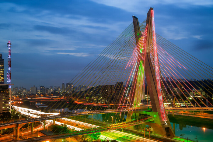 Особенно впечатляет оригинальная конструкция Понте-Эстаиада в ночное время (Сан-Паулу, Бразилия). | Фото: traveltriangle.com.