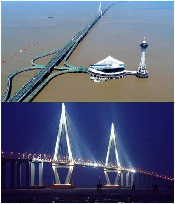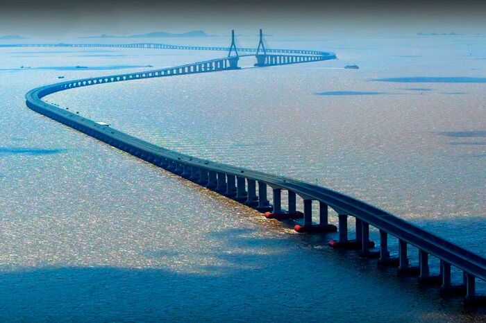 Китайцы не новички в мостостроении. Чего только стоит подвесной мост Анлан, построенный из бамбуковых перекладин и «тросов» в 300 году нашей эры, который до сих пор служит переправой через реку Мин. И это, не говоря о том, что практически ежегодно Поднебесная бьет рекорды по строительству самых-самых мостов (рекордсмены по длине и/или высоте, первооткрыватели по использованию неожиданных материалов и функциональности и т. д). Не стал исключением и мост Ханчжоу, строительство которого завершилось в мае 2008 года после девяти лет планирования и строительства. Это инженерное и архитектурное чудо до сих пор держит мировую пальму первенства. Мост Ханчжоу является самым длинным вантовым трансокеанским мостом мира, протяженность которого составляет 36 километров. Проходит он через реку Цяньтан в дельте реки Янцзы в Восточно-Китайском море, через открытый океан, обеспечивая шестиполосное движение сотням тысяч автомобилям в обоих направлениях.