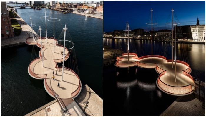 Мост Cirkelbroen (Кольцевой мост) в Копенгагене, задуманный художником Олафуром Элиассоном, соединяет портовую зону и городское пространство, попутно создавая пространство для встреч и взаимодействия. Вдохновленный парусниками, дизайн состоит из пяти круглых платформ, расположенных в шахматном порядке. Каждую платформу «окутывает» конструкция, отчетливо напоминающая структуру мачт, держащих паруса. И пусть он не поражает запредельной высотой или нереальной протяженностью, инновационная переправа сочетает в себе функциональность с визуальным очарованием и попутно способствует развитию чувства общности и укреплению отношений между пешеходами. Мост является свидетельством гармоничной интеграции искусства и инфраструктуры, улучшая городской ландшафт, что делает его одним из лучших мостов в мире.