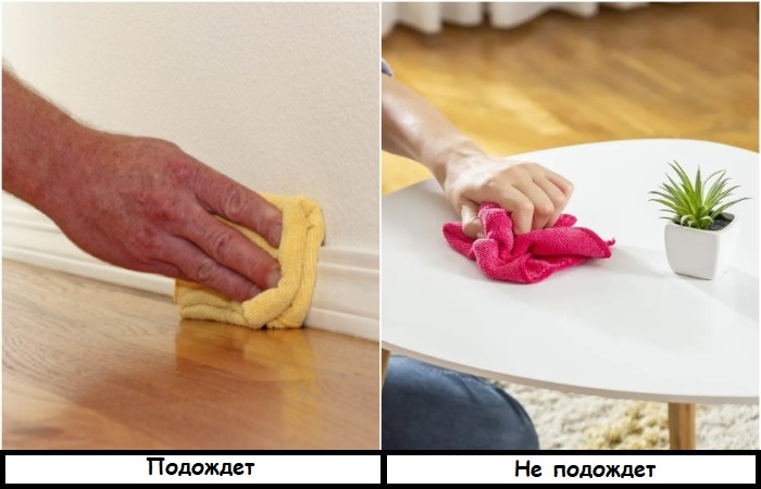 Стол нужно протереть в первую очередь, а плинтус оставить на потом