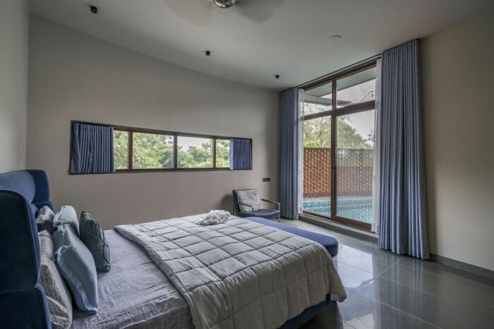 У каждого поколения семьи есть уединенный уголок, где они могут спокойно отдыхать, наслаждаясь красотой, открывающейся за масштабным окном (The Ring House, Индия). | Фото: arch3design.ru.