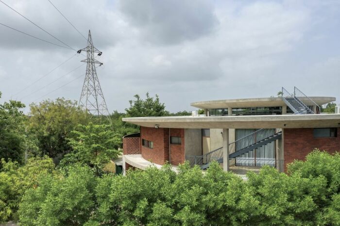 В идиллическом месте пригорода Ахмадабада, более известном как Джаспур (Индия), недавно появился удивительный дом, спроектированный для большой и дружной семьи, состоящей из 14 человек (три поколения), новаторской архитектурной студией prAcademics. Когда многочисленное семейство задумало строительство загородной резиденции, подходящей для отдыха на выходных, было решено выбирать участок подальше от города. К счастью, подвернулся прекрасный вариант с обширной территорией, которую окружают сельскохозяйственные угодья, а сам участок мог похвастаться более чем 120 деревьями, преимущественно манго и чику (саподилла). Роскошное природное окружение диктовало свои условия, поэтому семья принялась искать вариант разработки особенного проекта. Со своими предложениями и видением концепции будущего дома заказчики обратились к архитекторам студии prAcademics, специализирующейся на строительстве экологически чистых устойчивых объектов, которые идеально гармонируют с окружающей средой.