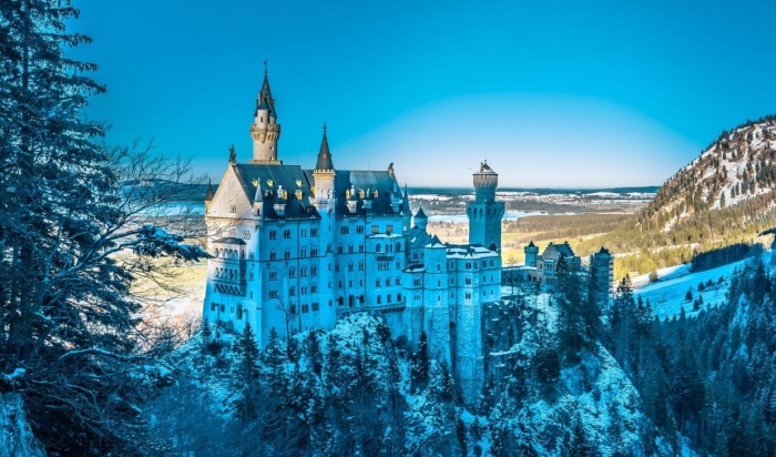 Замок Нойшванштайн особенно хорош в зимнюю пору, когда белые стены сливаются с заснеженными вершинами и кронами деревьев (Бавария). | Фото: theepochtimes.com.